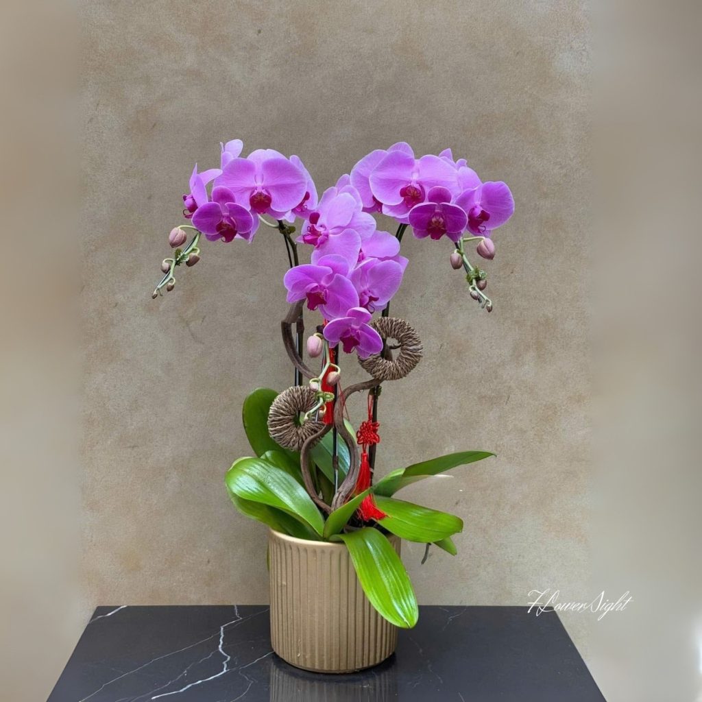 Chậu lan tím nhỏ xinh mang đến niềm vui ngọt ngào cho ngày đặc biệt của người thân hay bạn bè. Chậu lan hồ điệp 3 cành được đặt trong chậu nhỏ, gọn gàng nhưng đầy sức sống. Món quà như thay cho lời chúc bình an và hạnh phúc bền lâu. Từng cánh hoa tỏa sáng, để lại ấn tượng sâu đậm trong dịp sinh nhật.
