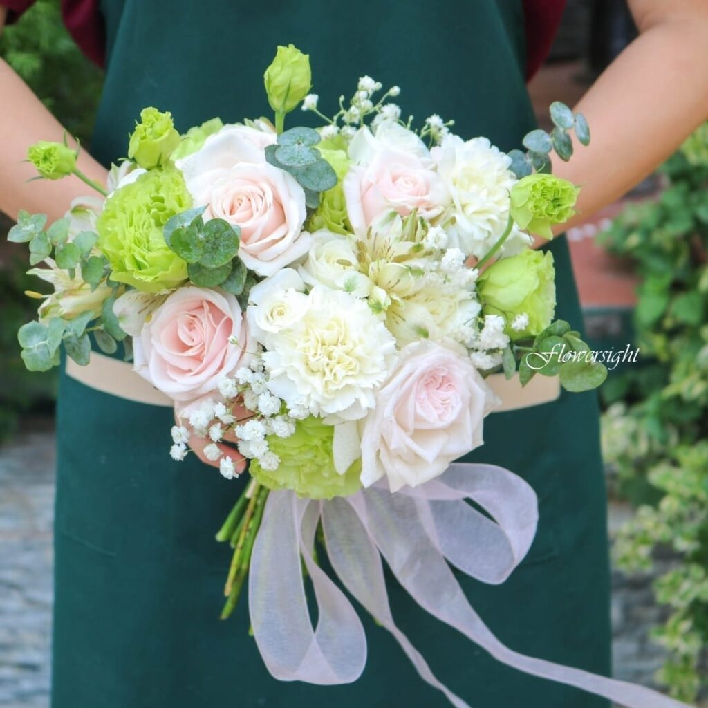 Dù là đám cưới trong nhà hay ngoài trời, theo phong cách cổ điển hay hiện đại, bó hoa “Beautiful” đều phù hợp hoàn hảo. Dễ dàng kết hợp với váy cưới trắng, be hoặc pastel, bó hoa sẽ giúp cô dâu thêm nổi bật và ghi dấu khoảnh khắc khó quên trong lễ thành hôn.
