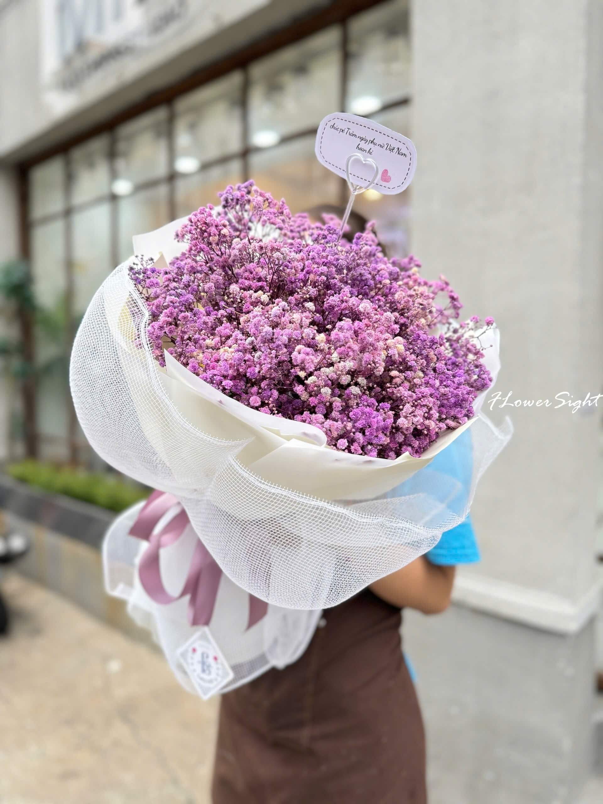Bó hoa baby tím vô cùng lãng mạn phù hợp để dành tặng những người thân yêu