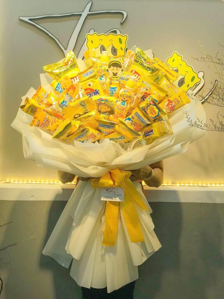 Bó hoa kẹo màu vàng nhiều loại khác nhau