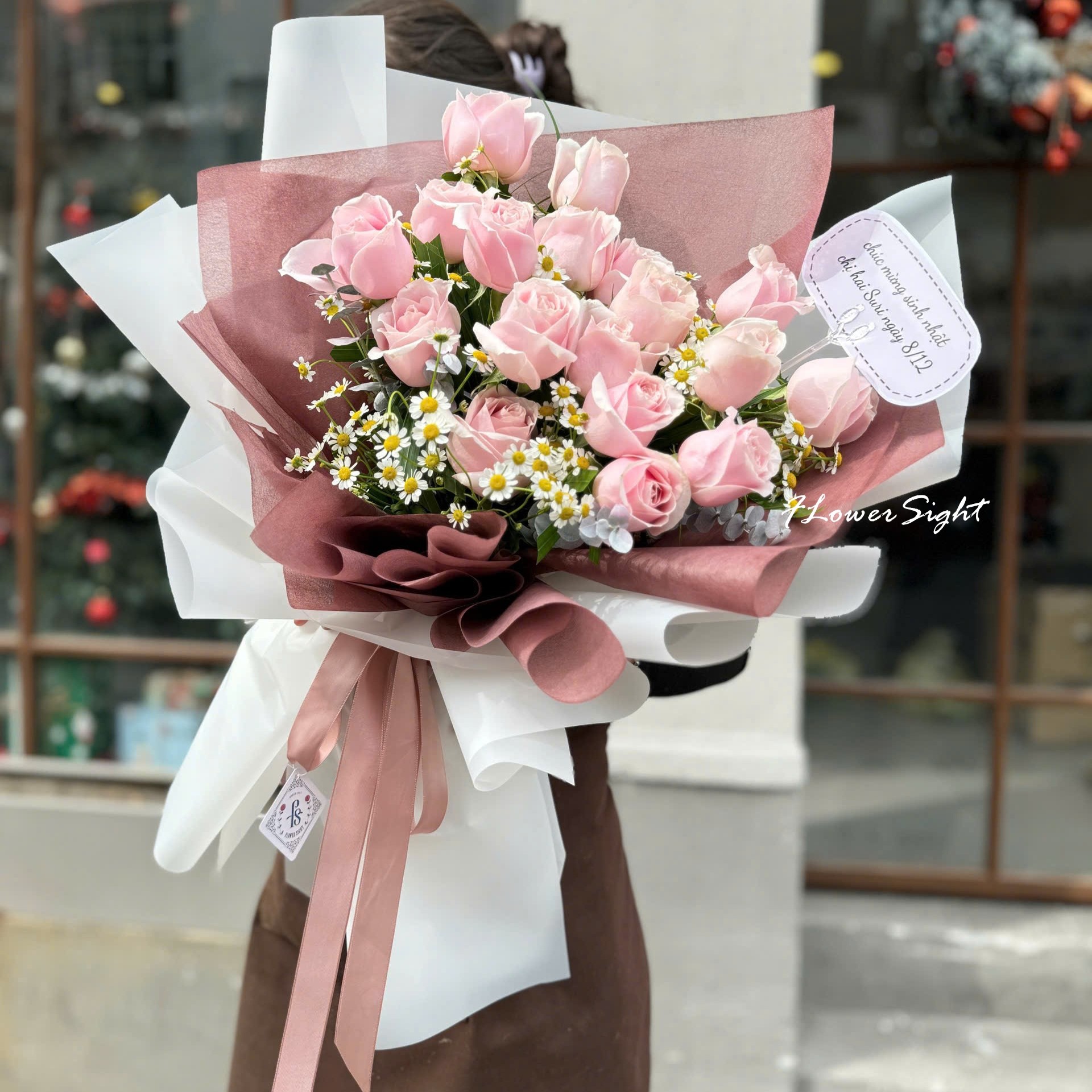FlowerSight phân phối bó hoa tone hồng trắng tươi