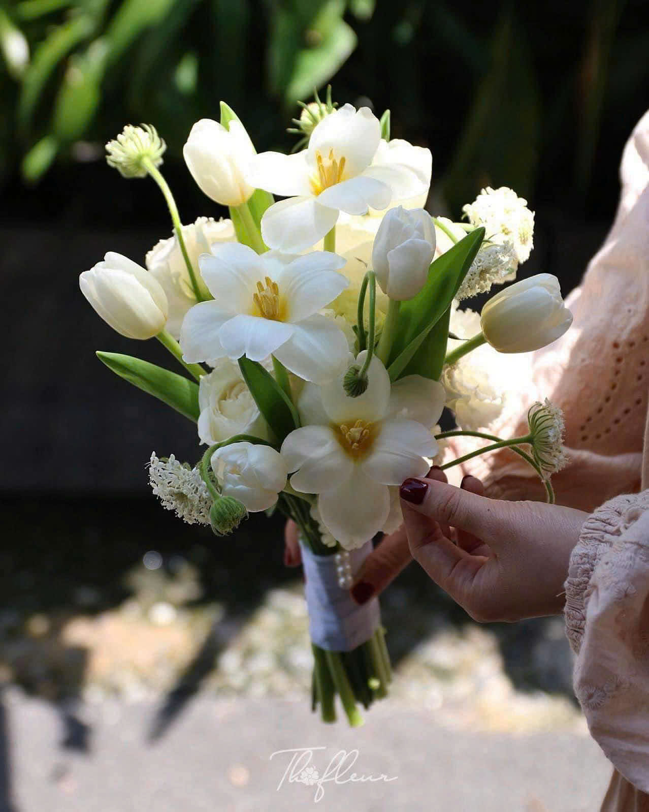 – Bó hoa tulip trắng cô dâu bao gồm thành phần: