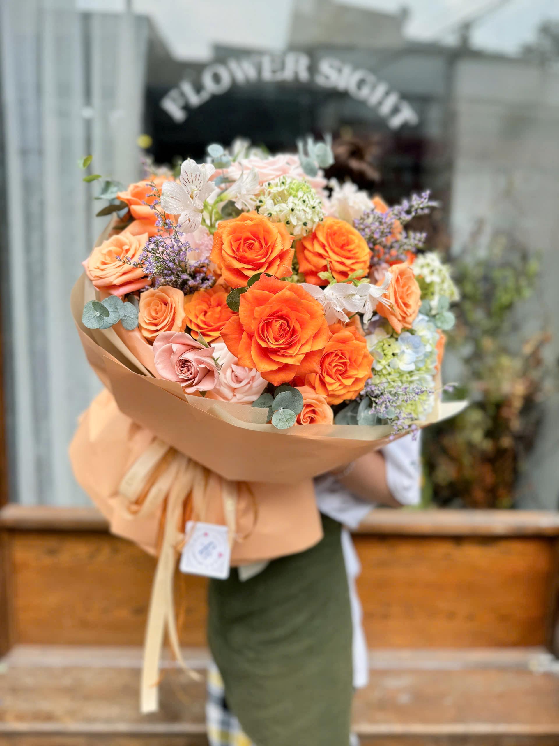 Hoa tươi luôn là món quà tặng đặc biệt ý nghĩa, là lời nói chân thành từ trái tim và giúp người nhận cảm thấy bản thân được trân trọng. Cửa hàng hoa FlowerSight thấu hiểu nên đáp ứng đa dạng các mẫu hoa đẹp tươi theo yêu cầu, theo mùa, theo màu sắc, theo trend,… Bó hoa vàng cam là đại diện cho những điều tích cực, may mắn và giúp con người cảm thấy hạnh phúc hơn rất nhiều.