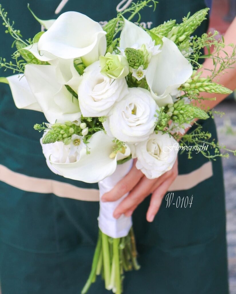 Biểu tượng của sự thanh thoát và tinh tế, bó hoa cưới tay Calla Lily. Mang vẻ đẹp sang trọng, dịu dàng, và là lựa chọn hoàn hảo cho cô dâu yêu thích sự đơn giản nhưng ấn tượng.
