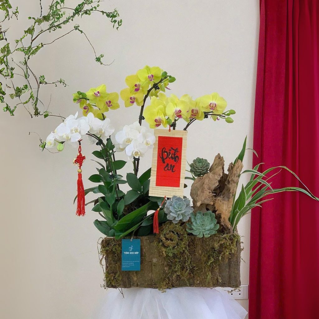Vào dịp cuối năm, chậu hoa là cách tinh tế để gửi trọn lời chúc may mắn và thành công. Sự kết hợp hài hòa giữa lan, lá phụ và sen đá tạo vẻ đẹp thanh thoát và sinh động. Món quà vừa ý nghĩa vừa mang năng lượng tích cực, để lại ấn tượng sâu sắc.