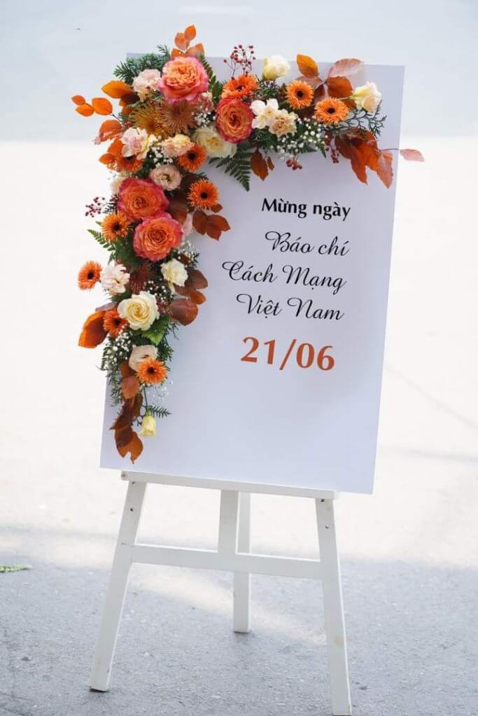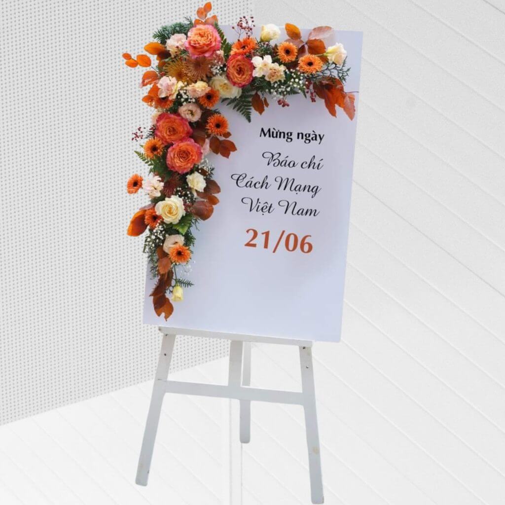 Với tone đỏ – vàng chủ đạo, điểm xuyết sắc xanh và trắng tinh khôi, kệ hoa mang lại cảm giác ấm áp, may mắn và hân hoan trong ngày đặc biệt. Đây là lựa chọn hoàn hảo cho các sự kiện khai trương cửa hàng, văn phòng, showroom hoặc chúc mừng đối tác – bạn bè.
