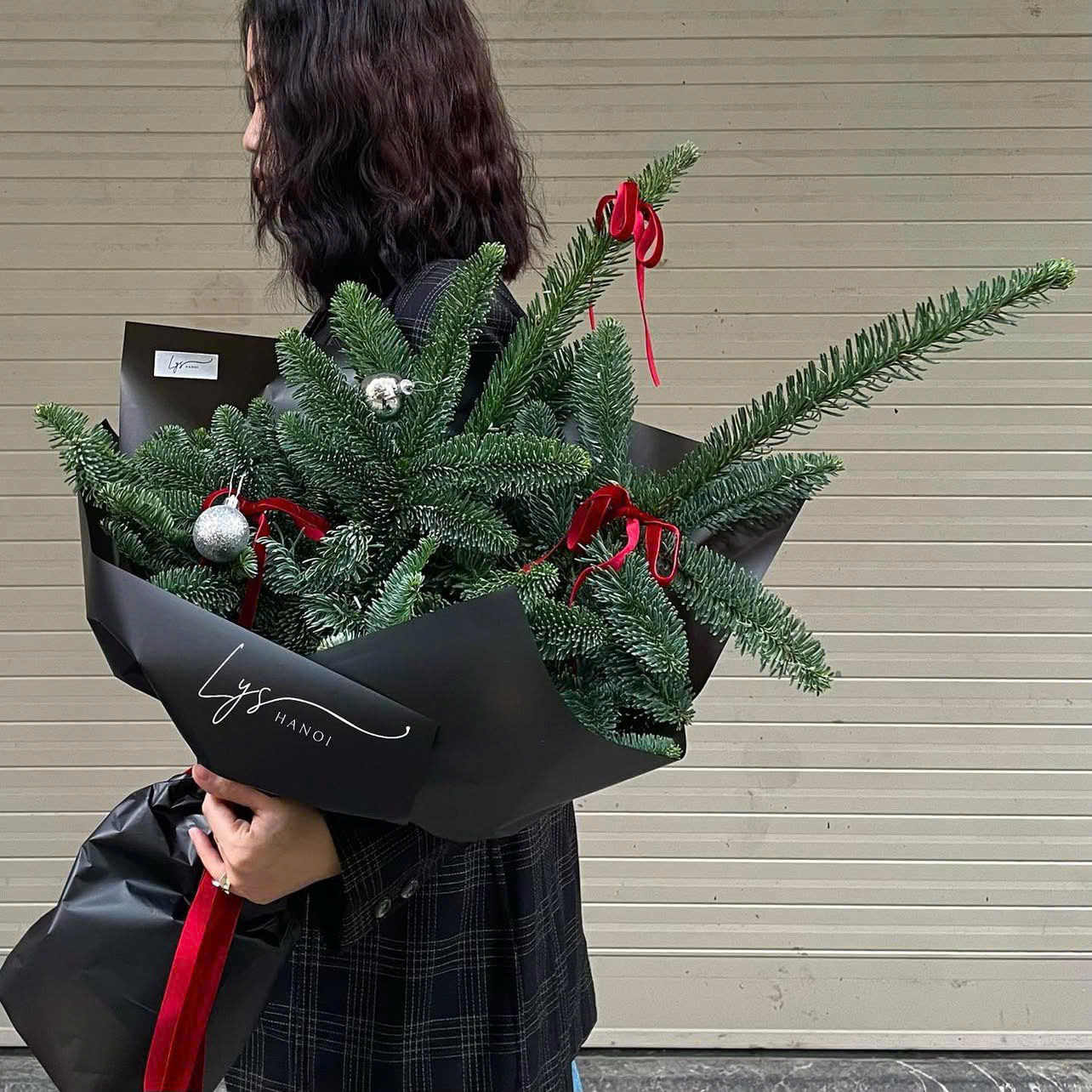 Bó Hoa Noel Clair DeLuneNhững cành thông Fraser được tuyển chọn theo tiêu chí “càng tự nhiên càng đẹp”: bản lá dày, độ xòe vừa phải, từng lớp kim xanh xếp chồng mềm mại. Khi nhìn nghiêng, bó hoa tạo cảm giác như một tán thông nhỏ đang vươn nhẹ trong gió lạnh – hướng ra phía trước, đầy sức sống.