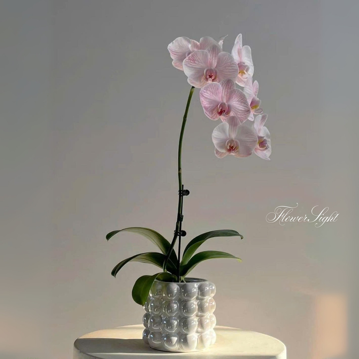 Chậu lan không chỉ là một món quà tinh tế được chăm chút tỉ mỉ mà còn đại diện cho lời chúc bình an, hạnh phúc và thịnh vượng gửi đến người nhận. Vẻ đẹp thuần khiết của những cánh lan trắng muốt hòa cùng sự trang nhã của chậu lan nhỏ đã tạo nên sự kết hợp hài hòa, sang trọng.