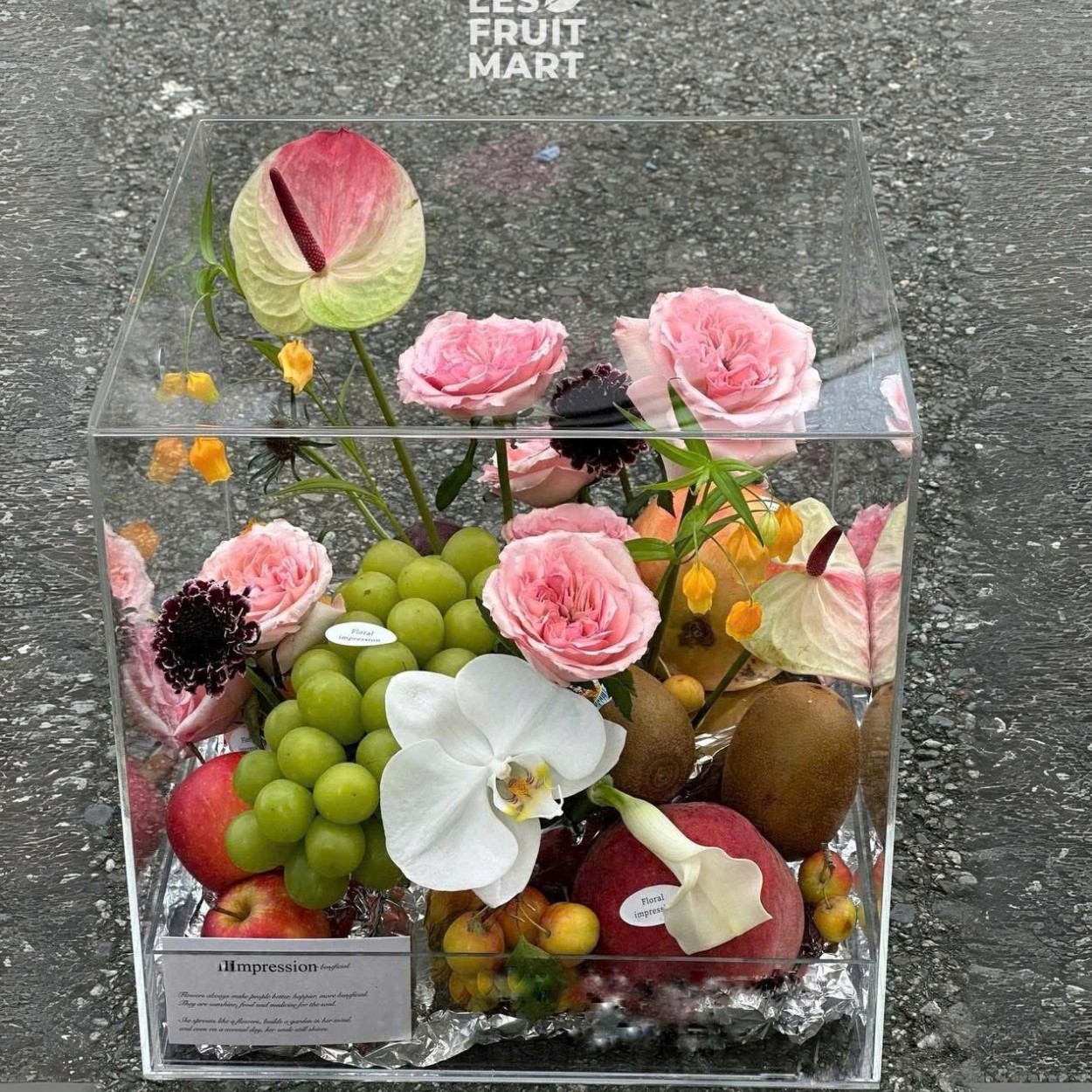 Finally nổi bật với sự kết hợp hài hòa giữa hoa lan trắng thanh khiết, hoa hồng hồng dịu dàng và các loại trái cây tươi ngon như nho xanh, kiwi và táo đỏ. Hộp nhựa trong giúp tổng thể trông hiện đại, sang trọng, đồng thời dễ dàng trưng bày trong nhiều không gian.