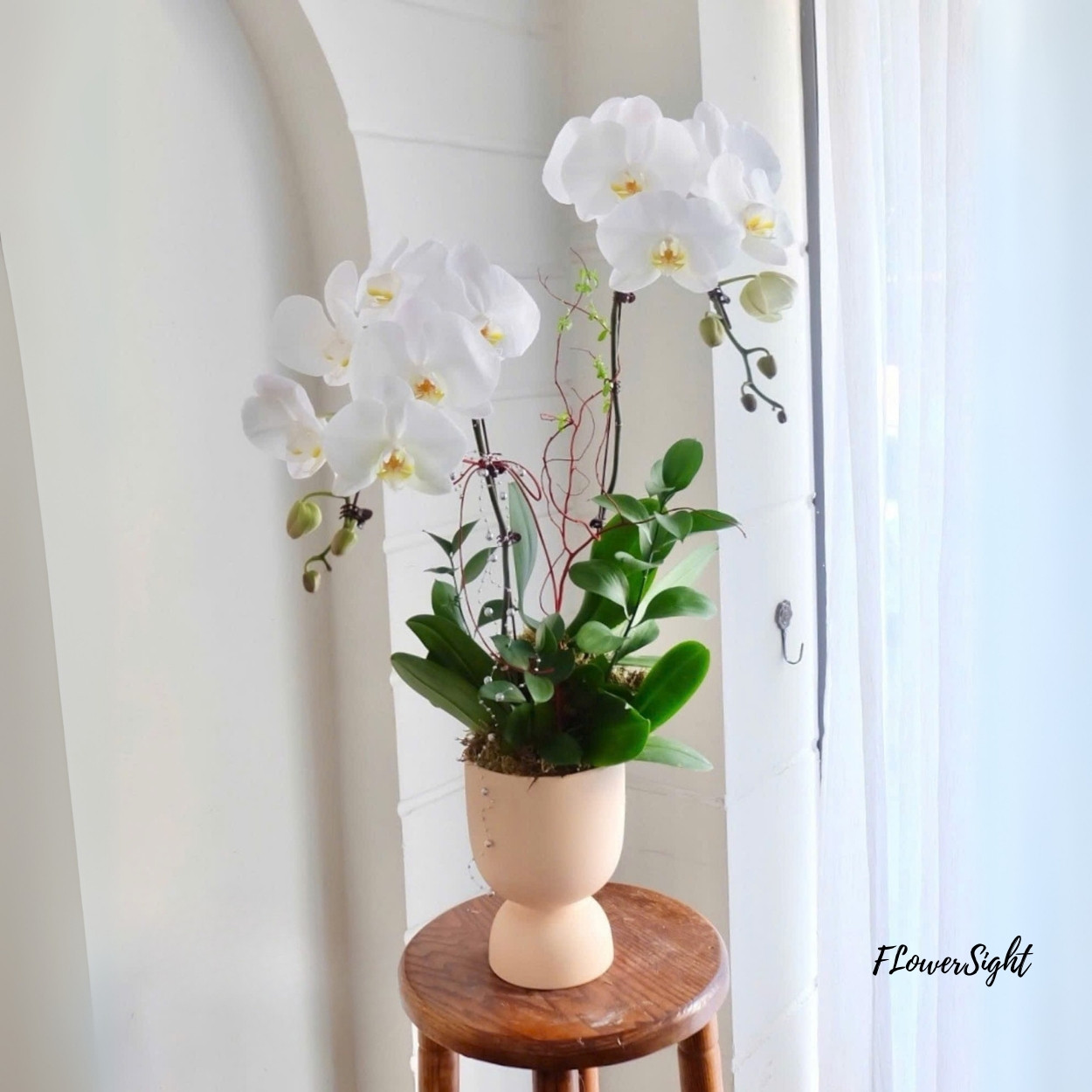 Gentle Love là biểu tượng của tình cảm dịu dàng, lãng mạn và sự quan tâm chân thành. Chậu hoa kết hợp tinh tế giữa lan, lá chanh và salis, tạo nên vẻ đẹp hài hòa và thanh thoát. Điểm nhấn từ lan 2 cành giúp chậu hoa thêm nổi bật, mang đến cảm giác trọn vẹn, tươi mới cho không gian.