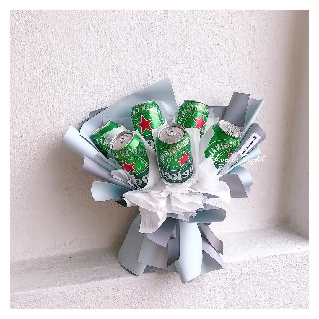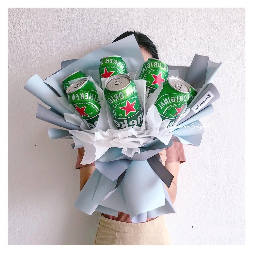 - Kích thước và số lượng lon/chai bia: Tùy thuộc vào ngân sách và mức độ thân thiết, bạn có thể chọn bó hoa với số lượng bia phù hợp (ví dụ: 3, 6, 12 lon/chai bia). Đảm bảo kích thước bó hoa không quá lớn hoặc quá nhỏ, tạo cảm giác cân đối và đẹp mắt.