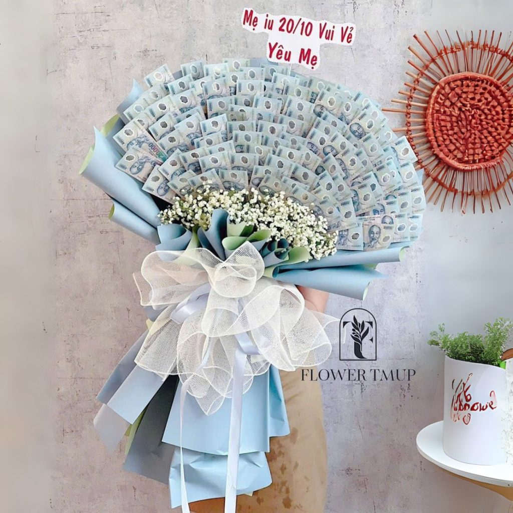 Bó hoa tiền này không chỉ đơn thuần là món quà trang trí mà còn mang trong mình nhiều thông điệp yêu thương. Món quà này đặc biệt phù hợp trong những ngày kỷ niệm và lễ tôn vinh phụ nữ, khi bạn muốn gửi gắm sự quan tâm trọn vẹn. Bằng sự kết hợp tinh tế giữa tiền và sắc hoa thanh nhã, nó dễ dàng chạm đến trái tim người nhận, để lại ấn tượng sâu đậm trong từng khoảnh khắc.