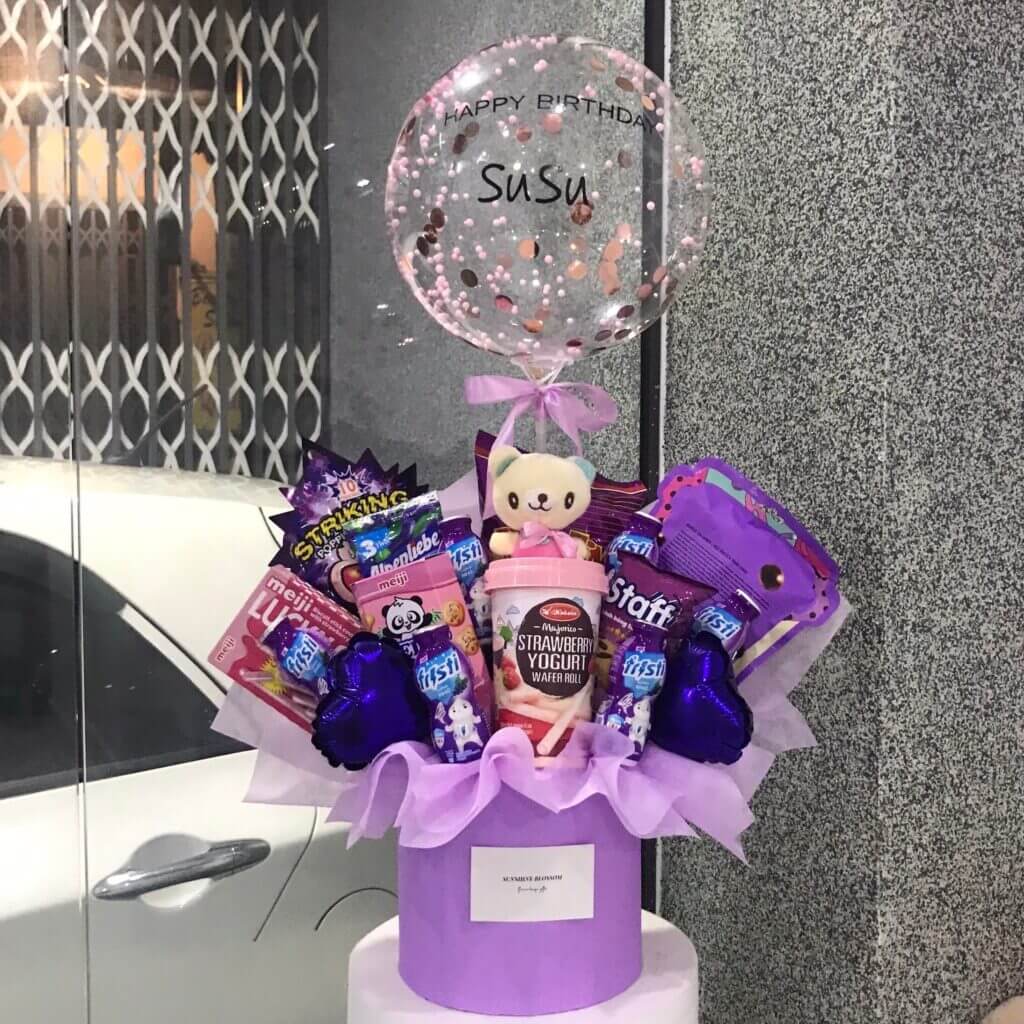 Đặt ngay bó hoa bánh kẹo màu tím tại FlowerSight