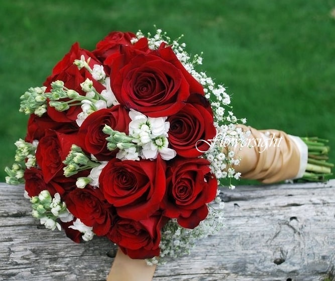 1. Hoa cưới hoa hồng đỏ – Tình yêu nồng cháy