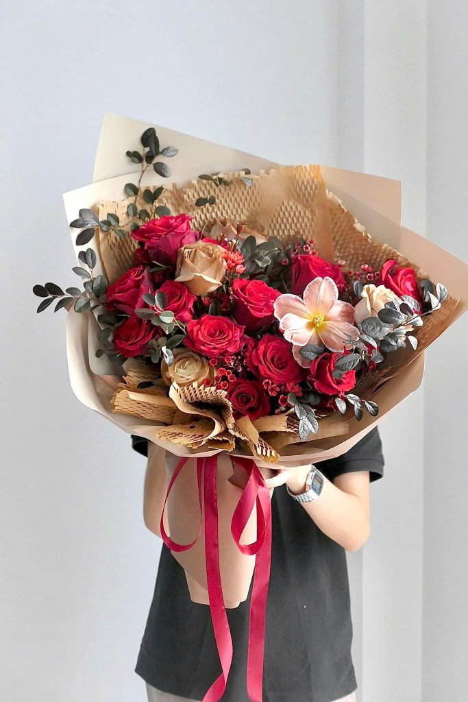 Bó hoa màu đỏ trắng có thể được mix từ những loài hoa nào?