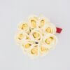 Mang một vẻ đẹp nhẹ nhàng, hoa sáp màu kem có sự kết hợp của gam màu trắng và vàng nhạt, mang đến sự thanh thoát, thường tạo cảm giác thân quen, hài hòa và dễ chịu. Đặc biệt, hoa sáp màu kem với sự tỉ mỉ từng cánh hoa, không chỉ có hình dáng giống hoa thật mà còn có hương thơm dịu nhẹ, tạo điểm nhấn cho bó hoa.