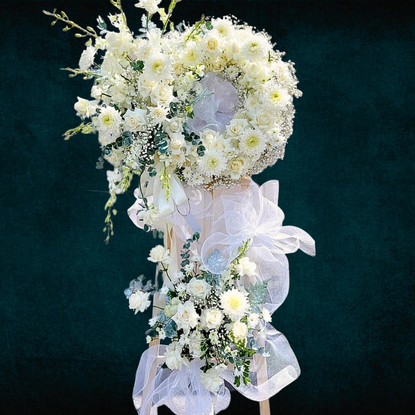 Tham khảo thêm các mẫu kệ hoa, vòng hoa tang lễ khác: