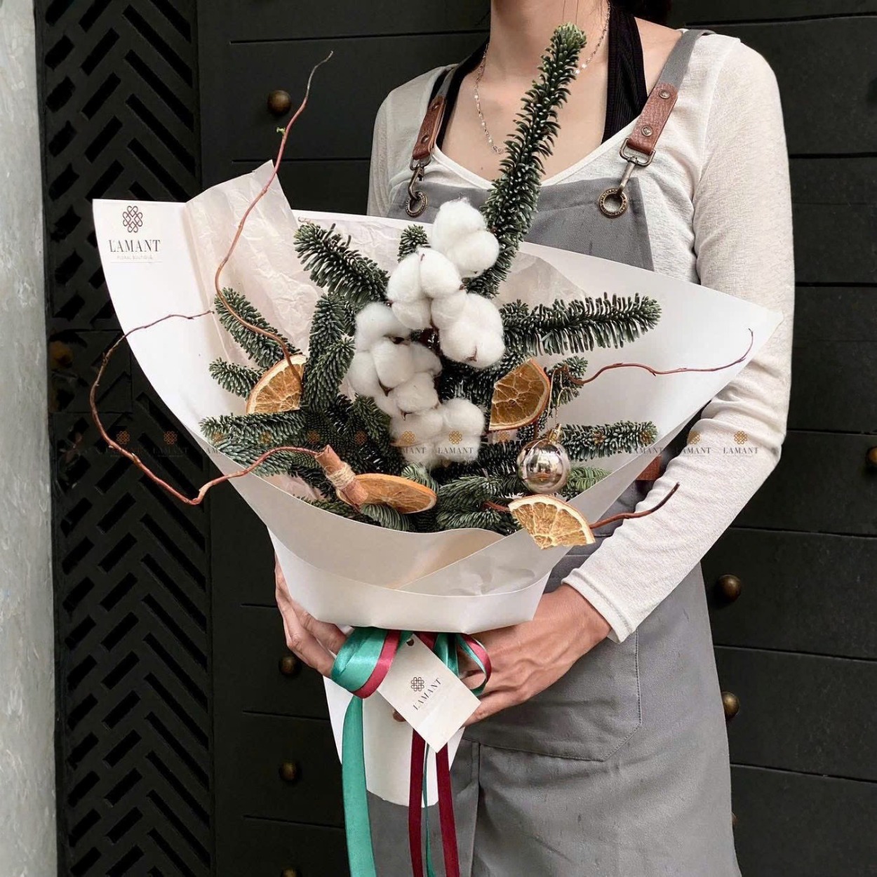 Bó hoa noel này phù hợp với những ai yêu phong cách tối giản, đề cao chất liệu tự nhiên hơn là những mảng màu rực rỡ. Tựa như một lời nhắn: “Bạn xứng đáng với một mùa Giáng Sinh bình yên, chậm rãi và đầy yêu thương”, Innocence giúp người tặng nói lên điều đó mà không cần quá nhiều lời.