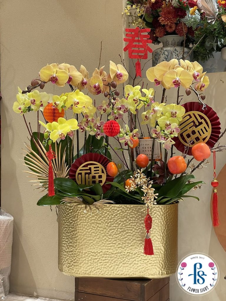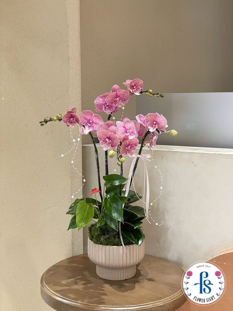 Chậu lan tươi thắm gửi lời chúc tân gia an khang, thịnh vượng