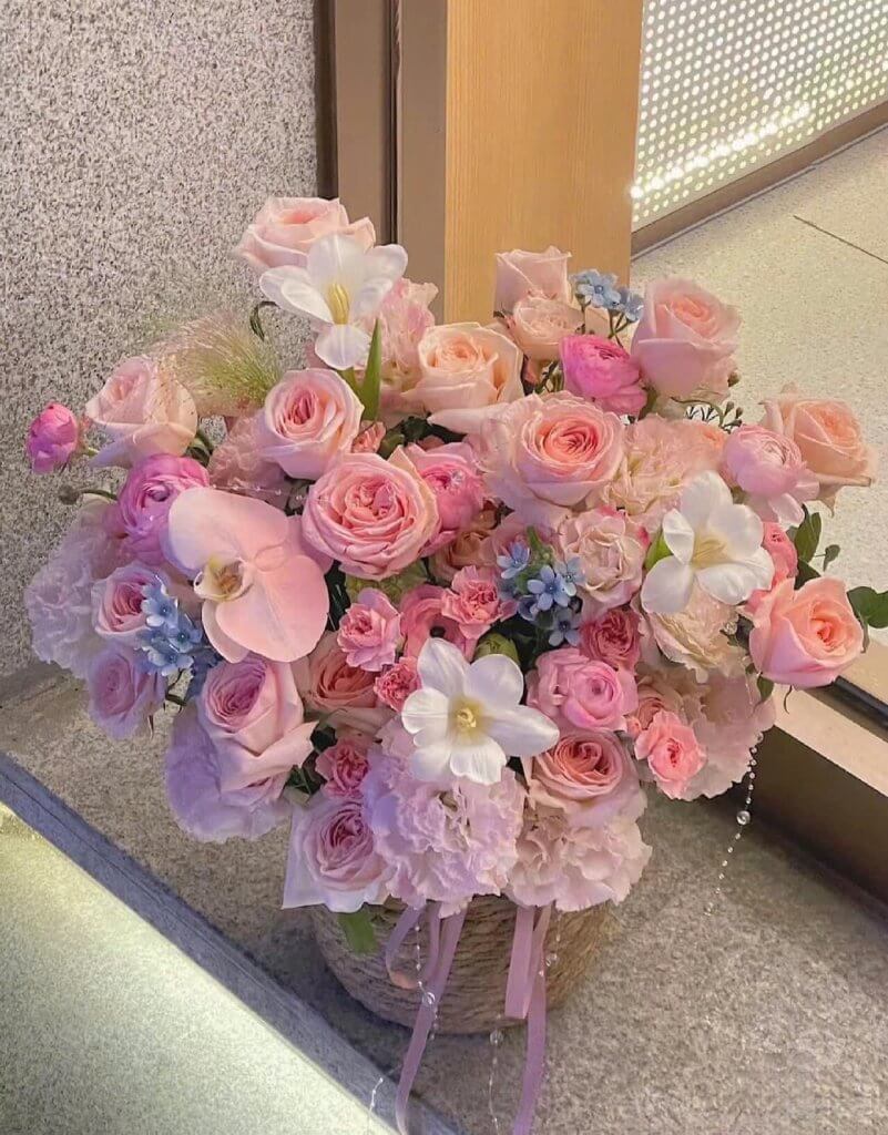 3. Giá thành của lẵng hoa, giỏ hoa hồng để bàn
