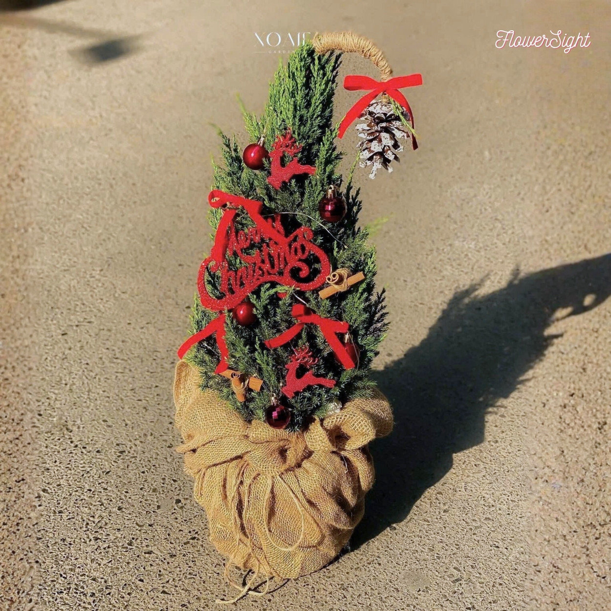 Chiếc nơ satin được cột nhẹ trên thân cây là điểm nhấn dịu dàng, khiến tổng thể trở nên mềm mại và hiện đại hơn. Sản phẩm thích hợp đặt tại phòng khách, bàn làm việc hoặc quầy lễ tân, vừa như món quà, vừa như lời chúc Giáng Sinh bình an.