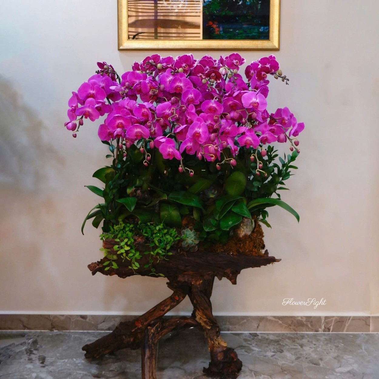 Love Lighting là sự hòa quyện giữa nét nhẹ nhàng của lan điệp rừng, sức sống mạnh mẽ của sen đá cùng sự xanh mát của lá chanh và dương xỉ. Mỗi chi tiết trong chậu hoa được sắp đặt khéo léo, tạo nên một tổng thể vừa thanh lịch vừa say đắm.