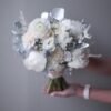 Bó hoa cưới môi xinh được thiết kế với sự kết hợp tinh tế giữa các loại hoa hồng trắng, hoa thanh liễu và lá phụ kiện khác. Hoa hồng trắng mang đến vẻ đẹp thuần khiết, tượng trưng cho tình yêu vĩnh cửu và sự trung thành. Hoa thanh liễu với sắc tím nhẹ nhàng tạo thêm nét dịu dàng và lãng mạn cho bó hoa. Các lá phụ kiện được chọn lựa kỹ càng, làm nổi bật vẻ đẹp của từng bông hoa.