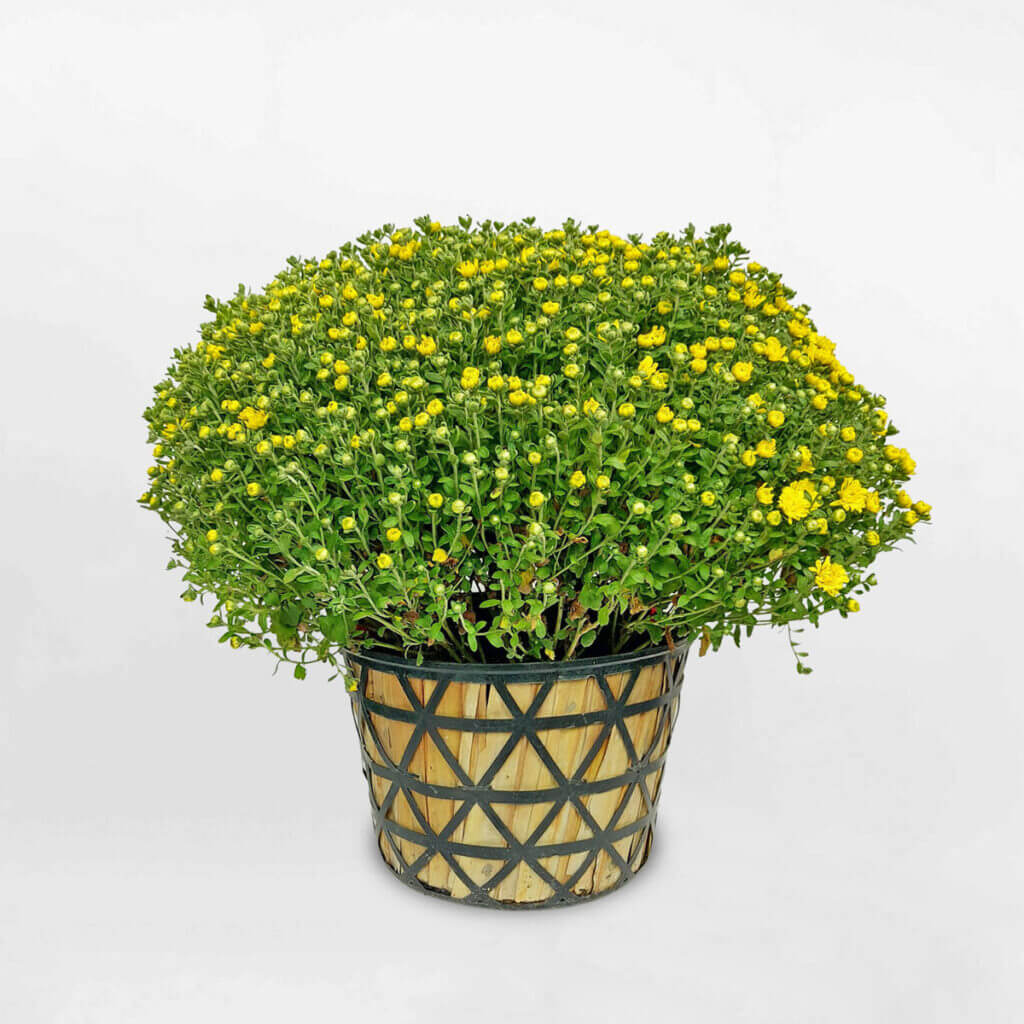 Ý nghĩa về phong thuỷ: Mua chậu hoa cúc mâm xôi đặt trong khuôn viên với quan niệm sẽ mang đến may mắn, hạnh phúc và tiền tài cho gia chủ. Các bông hoa vàng xếp san sát, cùng nhau khoe sắc, tạo nên một khung cảnh ấm áp và tràn đầy hy vọng.