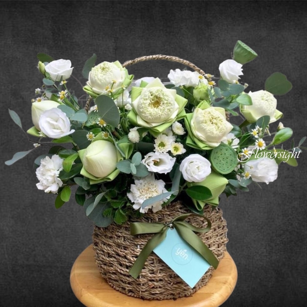 Kết hợp giữa hoa sen thái trắng, đài sen và các loại hoa lá phụ khác, giỏ hoa Mùa Sen tạo nên một món quà vừa thanh thoát, vừa trang nhã, phù hợp với không khí của ngày lễ đặc biệt này. Đây chính là món quà hoàn hảo để bày tỏ sự biết ơn, kính trọng và tình cảm chân thành đối với những người đã giúp đỡ chúng ta trên con đường học vấn.