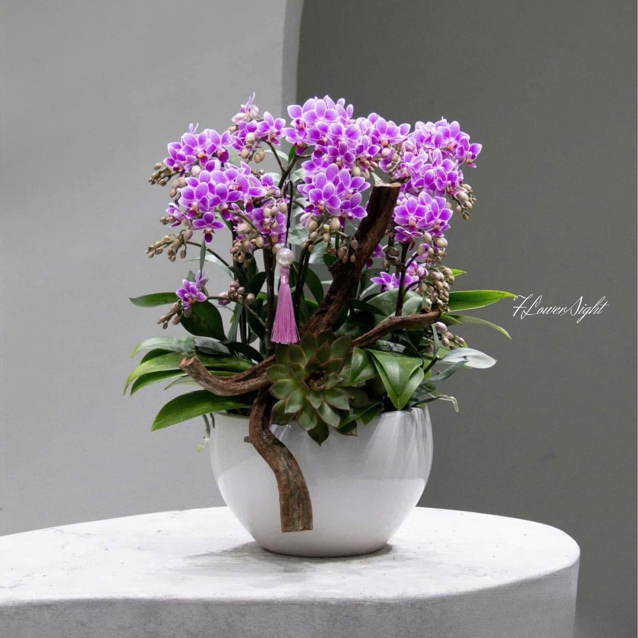 Chậu Lan Hồ Điệp Tím Nhất TâmChính sự kết hợp ấy giúp chậu hoa vừa nhẹ nhàng, vừa mạnh mẽ, tạo ấn tượng khó quên cho người thưởng thức. Chậu hoa nhỏ vì thế không chỉ dừng lại ở vẻ đẹp trang trí, mà còn gợi lên tinh thần gắn bó bền lâu và ý nghĩa về sự kiên cường trong cuộc sống.