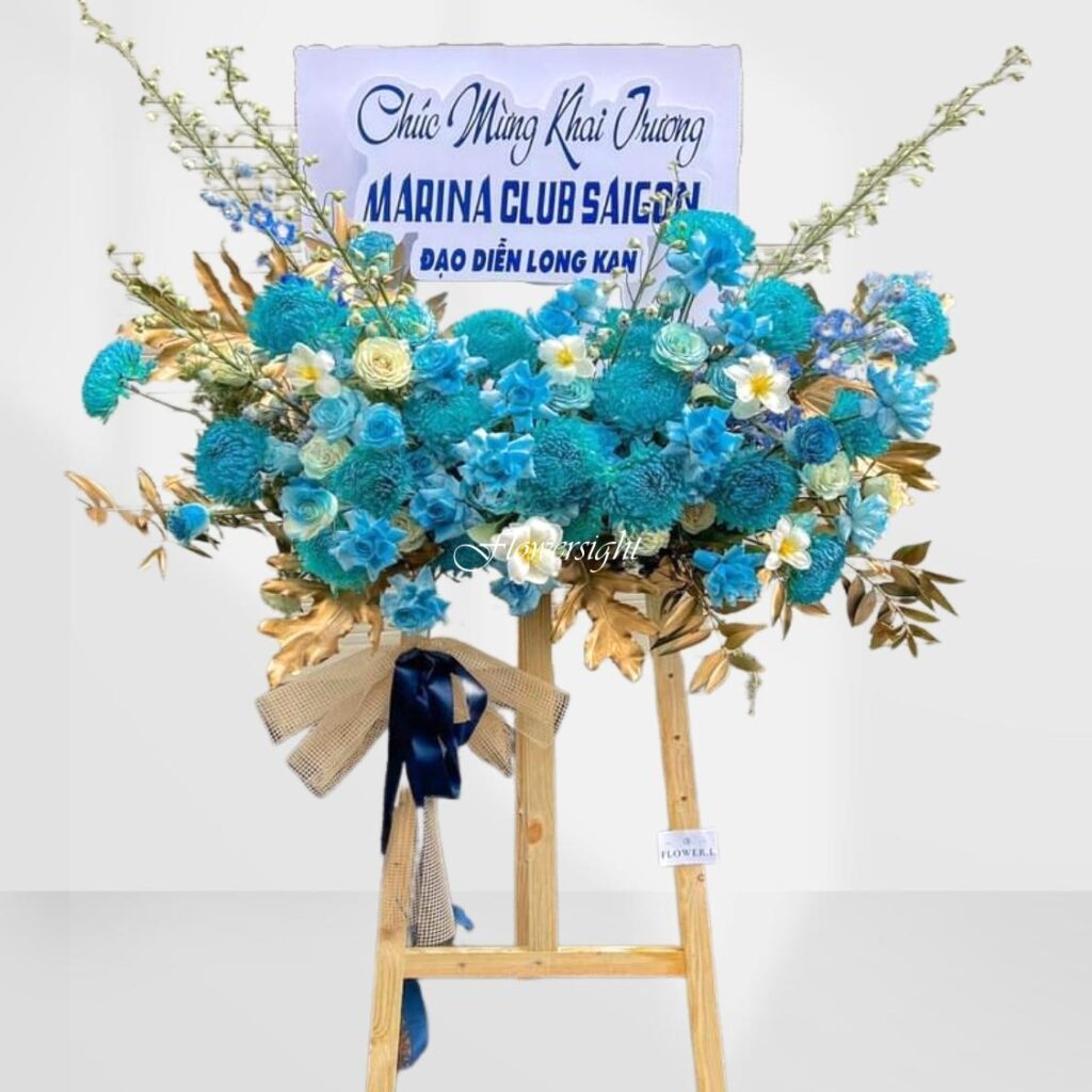Hoa khai trương được thiết kế từ những loài hoa cao cấp như lan vũ nữ, hồng Ecuador, cẩm tú cầu, cùng các nhánh lá xanh tươi, tạo nên một tổng thể hài hòa, thanh lịch. Màu sắc tươi sáng như vàng, đỏ, trắng, xanh là biểu trưng của sự tài lộc, thịnh vượng và phát triển bền vững. Kệ hoa này sẽ là điểm nhấn đặc biệt trong ngày khai trương, mang đến không gian trang trọng và tạo ấn tượng mạnh mẽ ngay từ cái nhìn đầu tiên.