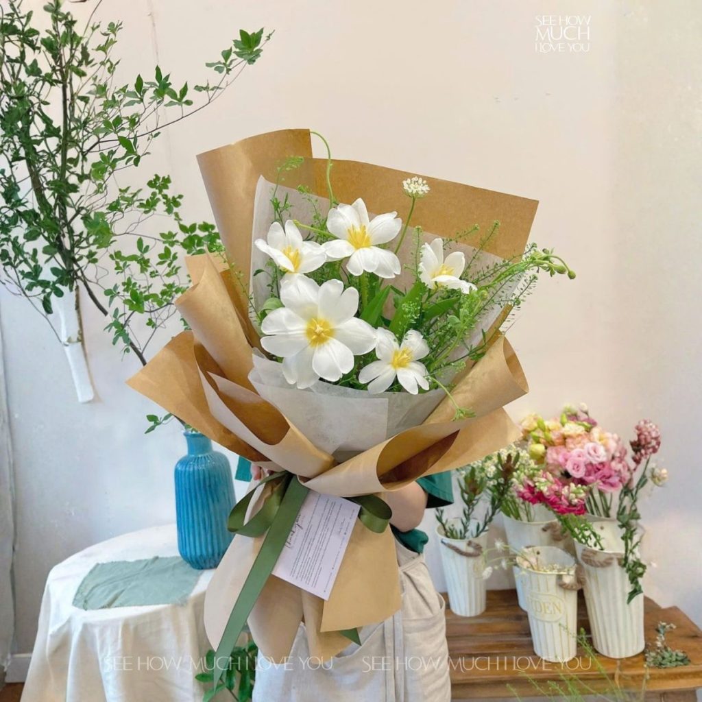 Có những khoảnh khắc, ta chẳng cần ngôn từ – chỉ cần một bó hoa tulip mang tên “Songs” là đủ để nói thay tất cả. Mỗi cánh tulip như một nốt nhạc dịu êm, khẽ ngân vang trên nền lá xanh và cỏ đồng tiền nhỏ xinh, tạo nên bản hòa ca của tình yêu, của niềm tin và của những cảm xúc trong trẻo nhất.