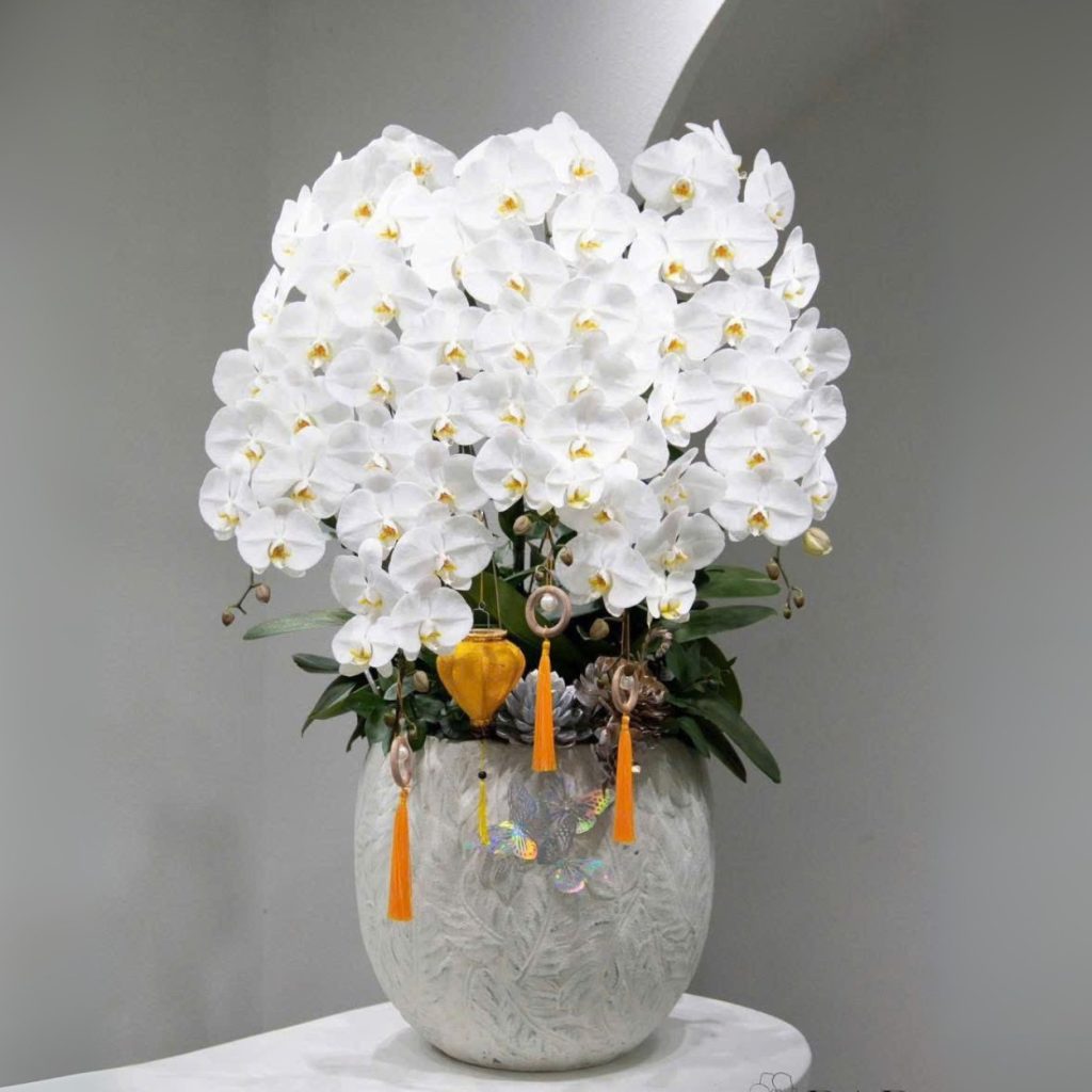 Chậu lan sinh nhật như Thất Nhật là lựa chọn tuyệt vời cho những ai muốn thể hiện sự quan tâm chân thành qua một món quà tinh tế. Không quá rực rỡ nhưng lại nổi bật nhờ sự phối hợp sắc độ nhã nhặn, đây là mẫu hoa rất được ưa chuộng hiện nay.