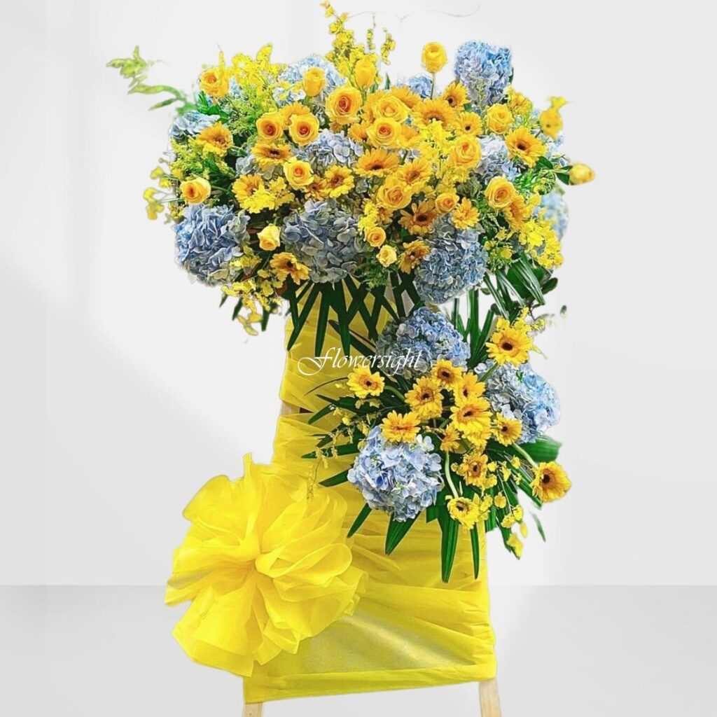 Hoa Chúc Mừng Thành Lập Công Ty – Kệ Hoa Khai Trương “Thuận Lợi” là món quà trang trọng và ý nghĩa, thay lời chúc cho doanh nghiệp một khởi đầu suôn sẻ, mọi việc hanh thông, gặt hái thành công rực rỡ. Với gam màu nổi bật như đỏ quyền lực, vàng may mắn cùng sự điểm xuyết nhẹ nhàng của sắc xanh tươi mới, kệ hoa không chỉ làm bừng sáng không gian buổi lễ mà còn truyền tải thông điệp về sự phát triển bền vững, thuận buồm xuôi gió trên hành trình kinh doanh.