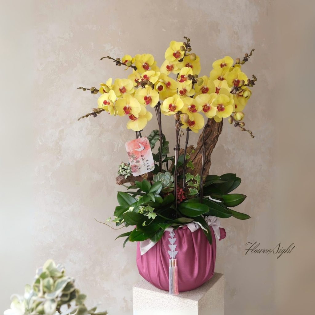 Chậu hoa lan hồ điệp vàng kết hợp lan, sen đá, lá chanh và gỗ lũa mang đến vẻ đẹp tinh tế, rực rỡ và sinh động. Tia sáng là lựa chọn hoàn hảo để gửi lời chúc may mắn, thành công và hạnh phúc trọn vẹn trong dịp sinh nhật, khai trương hay mừng tốt nghiệp đại học. Chậu hoa này không chỉ tô điểm không gian sống, mà còn truyền đi thông điệp tích cực và niềm vui bền lâu.