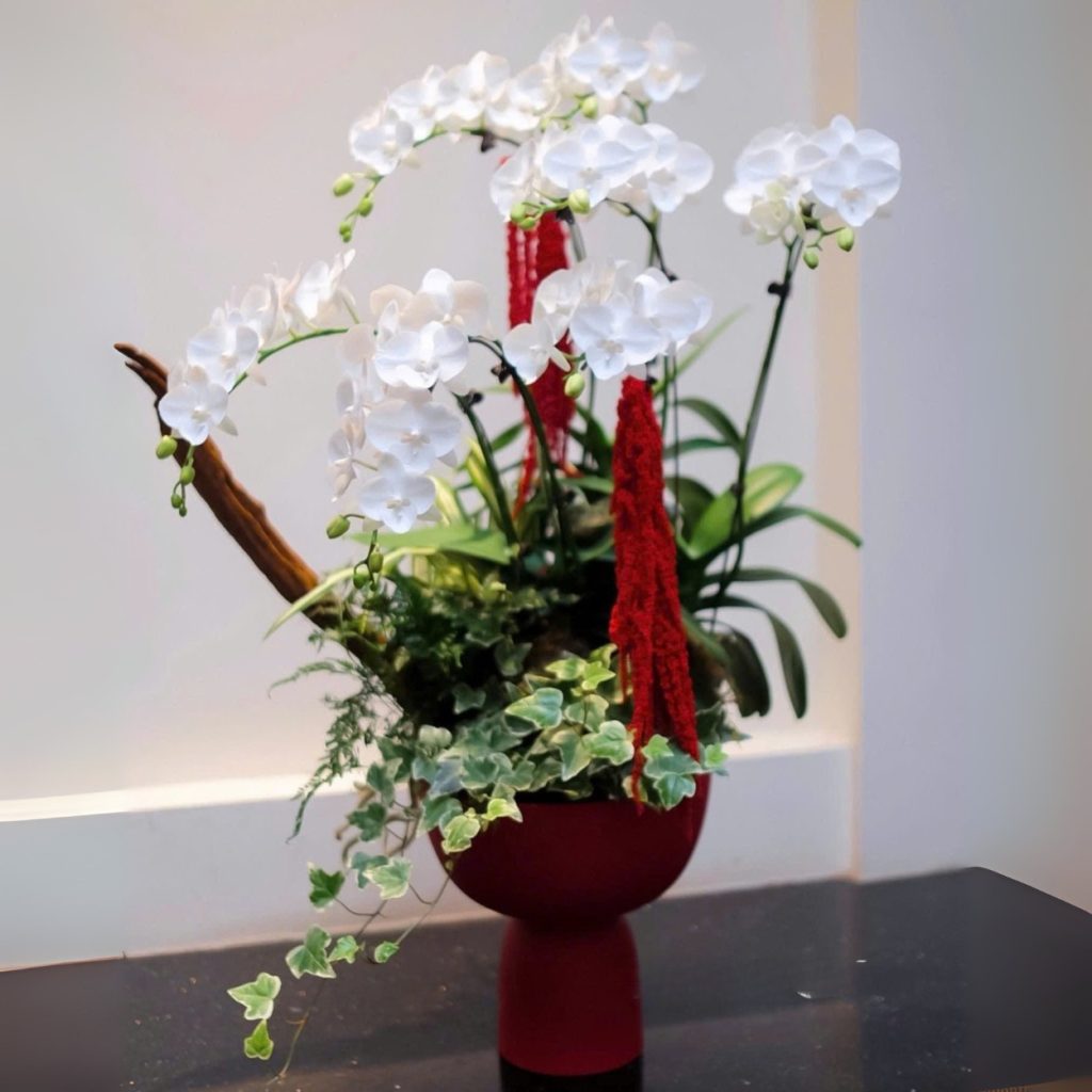 Chậu hoa này với sắc hoa tinh tế sẽ giúp không gian làm việc hay bàn tiếp khách trở nên thanh lịch và đầy sức sống. Mỗi đường nét hoa và phụ kiện đều được sắp xếp hài hòa, tạo cảm giác thư giãn khi nhìn ngắm. Đây là điểm nhấn hoàn hảo cho bất kỳ không gian nào cần sự tươi mới và sang trọng.