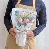 Bó Hoa Tulip  Tuổi mộng mơLớp giấy gói là sự kết hợp giữa giấy trắng sương và lớp nhựa trong in chữ nghệ thuật, mục đích giữ form mà không che mất vẻ đẹp của hoa. Phần nơ ruy băng hai tầng thắt vừa tay, gọn gàng, giúp bó đứng dáng tốt khi cầm hoặc đặt lên bàn.