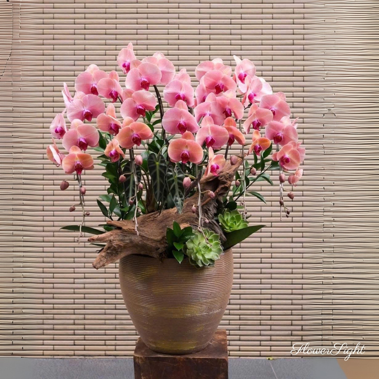 Tường Mai Tình là sự hòa quyện đầy duyên dáng của lan cùng sắc xanh thiên nhiên, gửi trao thông điệp yêu thương và may mắn. Món quà này vừa thanh nhã vừa sang trọng, thích hợp tặng mẹ, bạn bè hay dùng để chưng Tết.