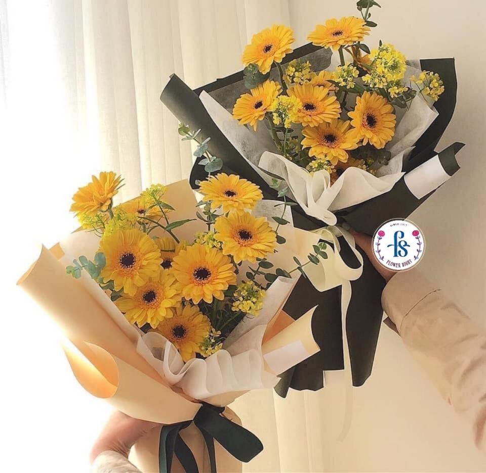 Bên cạnh đó, hoa lá phụ được chọn lựa kỹ càng để làm nổi bật vẻ đẹp khỏe khoắn của hoa đồng tiền. Lớp giấy gói được sử dụng với tông màu nhã nhặn, tạo nên tổng thể bó hoa hài hòa nhưng vẫn nổi bật. Mỗi chi tiết nhỏ đều góp phần hoàn thiện món quà tượng trưng cho sự trưởng thành, nỗ lực và niềm tin vào tương lai phía trước.