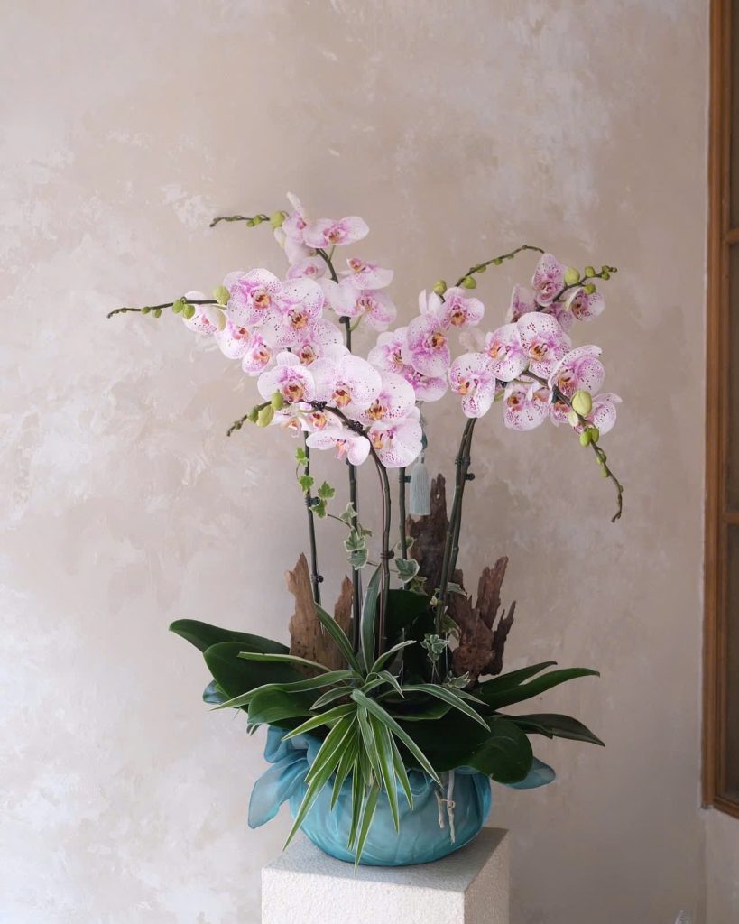 Khi tặng chậu hoa trong dịp tỏ tình, Vì sao mang thông điệp ngọt ngào và chân thành. Sự kết hợp hài hòa giữa lan, vải lụa và lũa gỗ tạo cảm giác tinh tế và nhẹ nhàng. Món quà này giúp khoảnh khắc thêm đáng nhớ và ấm áp.