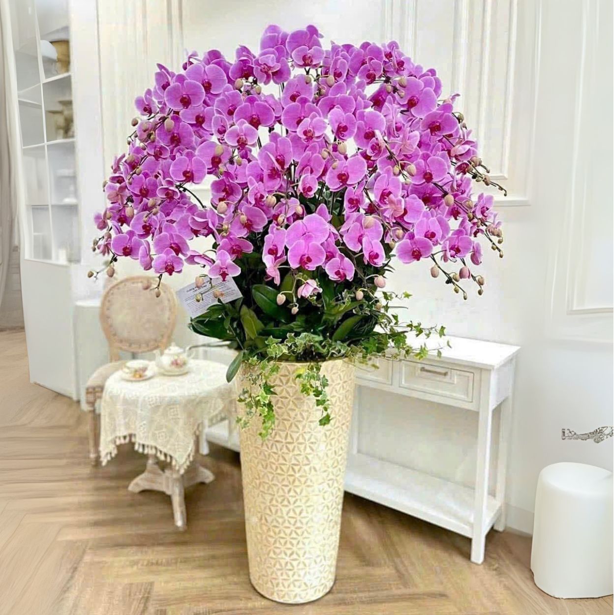 Không chỉ dùng làm quà, chậu lan hồ điệp lớn còn là lựa chọn trang trí lý tưởng tại khách sạn, văn phòng cấp cao, biệt thự hay không gian sự kiện. Mỗi cành lan góp phần nâng tầm thẩm mỹ, tạo ấn tượng mạnh mẽ với bất kỳ ai bước vào không gian đó.
