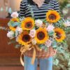 - Hoa hướng dương: Đây là loài hoa nhắc nhở về sức mạnh nội tại và khả năng vượt qua khó khăn. Với hình ảnh luôn hướng về mặt trời, hoa mang đến hy vọng, lạc quan và sự tự tin về một tương lai tươi sáng và những cơ hội mới đầy hứa hẹn. Trong giỏ hoa “Vui Mừng”, hoa hướng dương còn truyền tải lời động viên chân thành, giúp người nhận cảm thấy tràn đầy năng lượng, sự tự tin và tinh thần vững vàng để đối mặt với mọi thử thách trong cuộc sống.