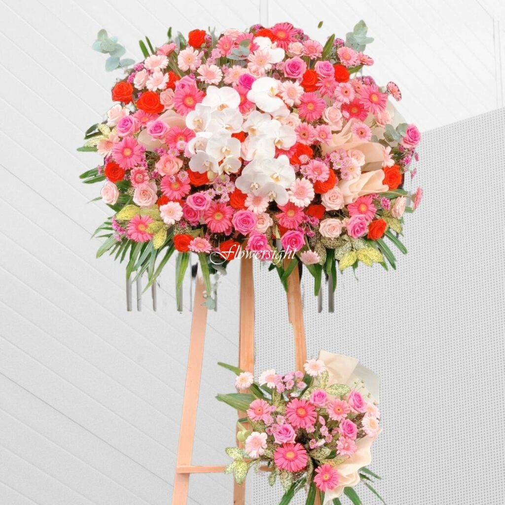 Đây không đơn thuần là một kệ hoa chúc mừng, mà là biểu trưng của khát vọng thành công và lời chúc vững vàng trên từng bước đường sự nghiệp. Sản phẩm được nhiều khách hàng lựa chọn để tặng bạn bè, đối tác, khách hàng trong ngày khai trương công ty, showroom, cửa hàng hay văn phòng mới.