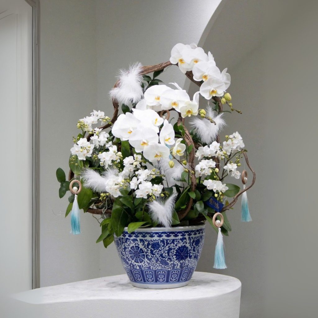 Chậu Lan Hồ Điệp Vươn Mình Bay XaTên gọi mang ý nghĩa khát vọng bay cao, bay xa, vượt qua mọi giới hạn và thử thách trong cuộc sống. Mỗi chi tiết trong bố cục như lời nhắn gửi về một hành trình thành công và phát triển không ngừng.