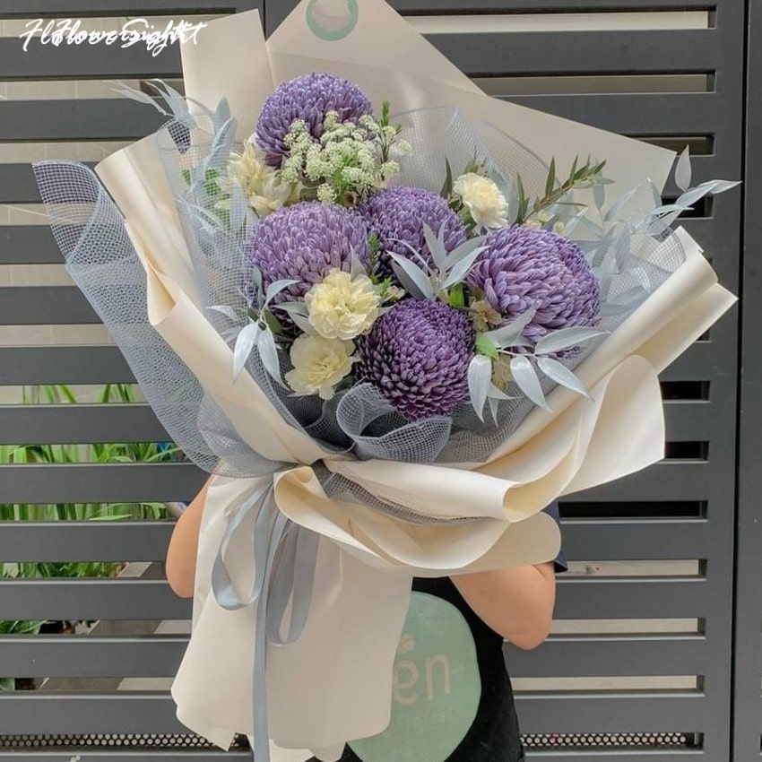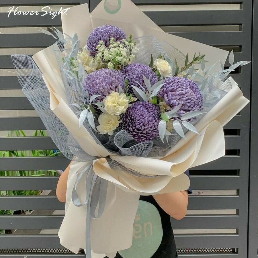- Cúc mẫu đơn tím: Mang vẻ đẹp sang trọng, quý phái với ý nghĩa về tình cảm thuỷ chung, đầy chiều sâu và sự ngưỡng mộ thầm lặng.