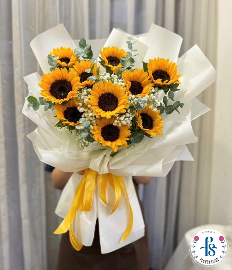 Mang trong mình thông điệp về niềm vui, sự lạc quan và một lời chúc thành công, bó hoa hướng dương luôn nổi bật với màu vàng tươi sáng, tràn đầy năng lượng. Đây là món quà tuyệt vời để bạn dành tặng bạn bè, chị em gái hoặc đồng nghiệp, như một lời cổ vũ và mong muốn họ luôn tỏa sáng, vững bước trên con đường mình đã chọn.
