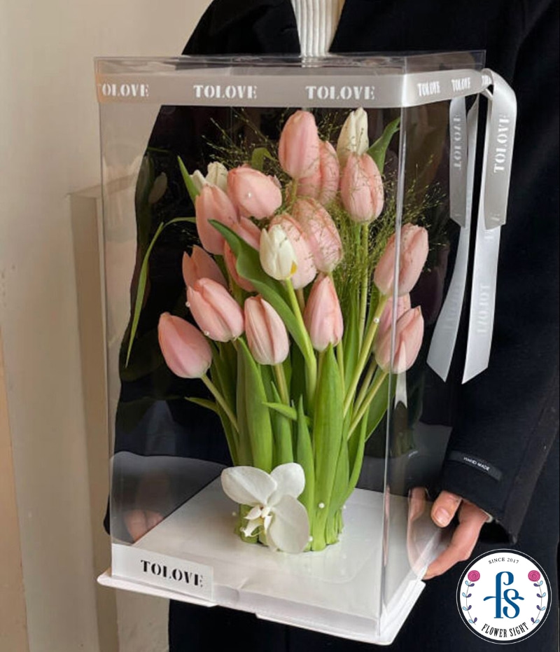 Vẻ đẹp tinh tế, kiêu sa của tulip luôn thể hiện sự trân trọng và quý mến. Thiết kế dạng hộp gỗ hoặc hộp giấy cứng không chỉ sang trọng mà còn tiện lợi khi trưng bày. Đây là lựa chọn tuyệt vời để làm quà tặng mùng 8 tháng 3 cho mẹ, vợ, sếp nữ hay những người đồng nghiệp bạn quý mến, gửi gắm thông điệp về sự hoàn hảo và thanh cao.