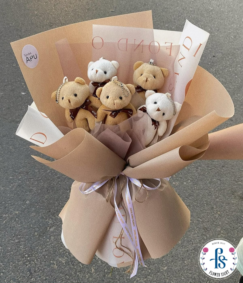 Với những ai yêu thích sự đơn giản, mộc mạc và gần gũi, bó hoa gấu vải là lựa chọn tuyệt vời. Gấu bông được làm từ chất liệu vải mềm mại, an toàn, mang lại cảm giác thân thuộc và ấm áp. Đây là món quà ý nghĩa, thể hiện sự quan tâm một cách tinh tế.