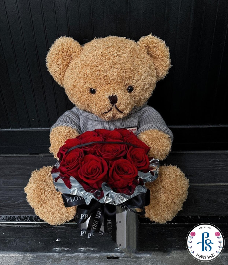 - Ý nghĩa biểu tượng sâu sắc: Gấu bông từ lâu đã là biểu tượng của sự che chở, ấm áp và gợi nhớ về tuổi thơ bình yên. Khi kết hợp với hoa, biểu tượng của tình yêu và sắc đẹp giúp món quà trở thành một lời nhắn nhủ chân thành: “Anh sẽ luôn ở đây, che chở và yêu thương em”.