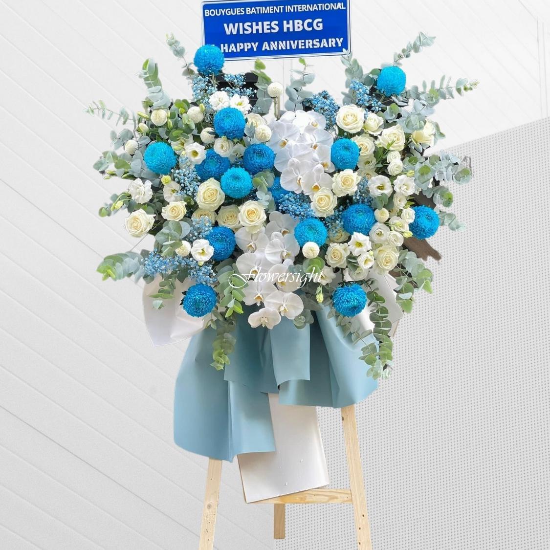 Kệ hoa chúc mừng khai trương vạn sự như ý là món quà tuyệt vời dành cho những dịp quan trọng. Sự hòa quyện giữa sắc màu tươi sáng và ý nghĩa sâu sắc mang đến không gian đầy hy vọng và may mắn.